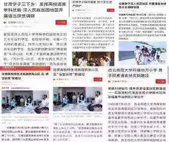在创青春、甘肃语言文字工作、推普助力脱贫攻坚、西北师大青年传媒中心、16877太阳集团路线检测等公众号累计推送实践纪实11篇,其中8篇被搜狐网转载,累计阅读量近200000次。