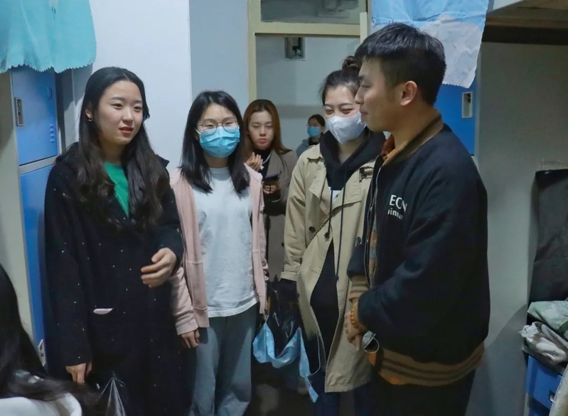 2017级新闻学1班梁蜓蜓、江慎诺还亲切的与学妹们拉起了家常,询问其家乡是哪里、清明放假是否回家等贴心问题,拉近了距离,温暖了宿舍。