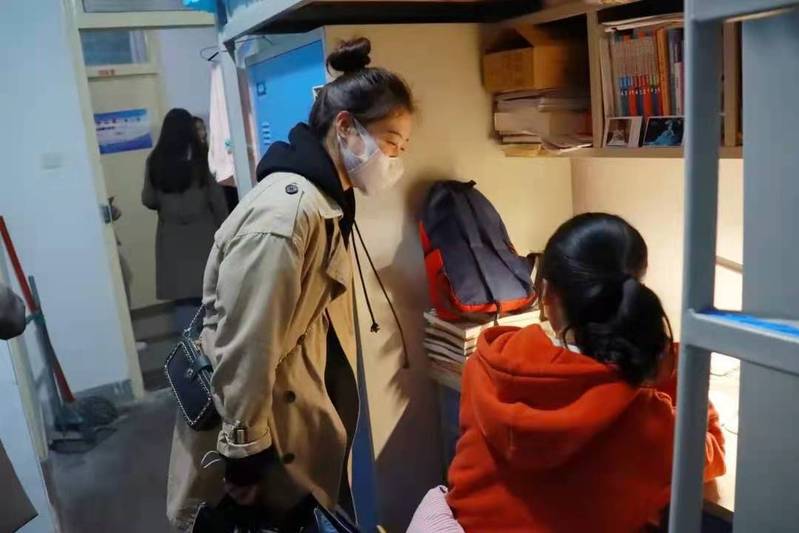 兰天公寓3号楼里,2017级广播电视编导2班优秀党员王静认真询问学妹宿舍安全问题,并分享自己的宝贵学习经验。她说道:“最重要的就是要提高学习成绩,多参加学院和专业相关活动。”