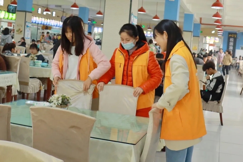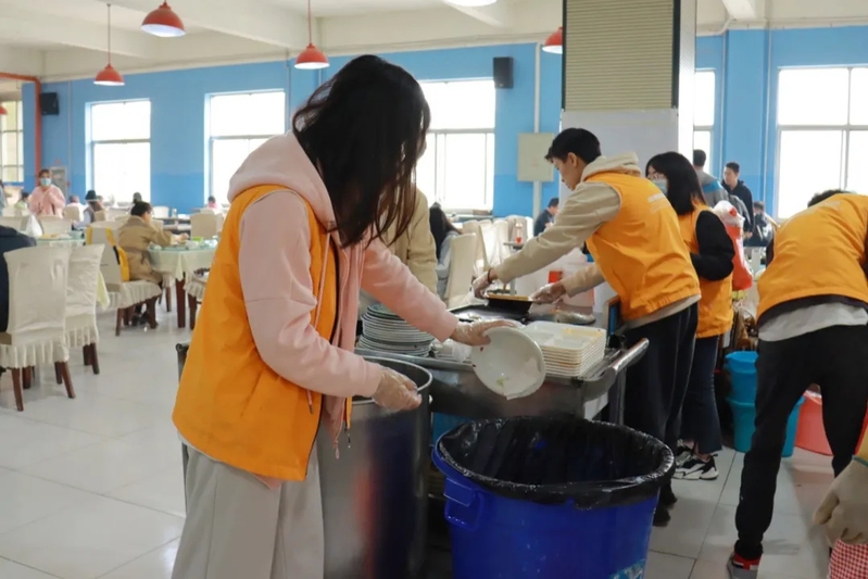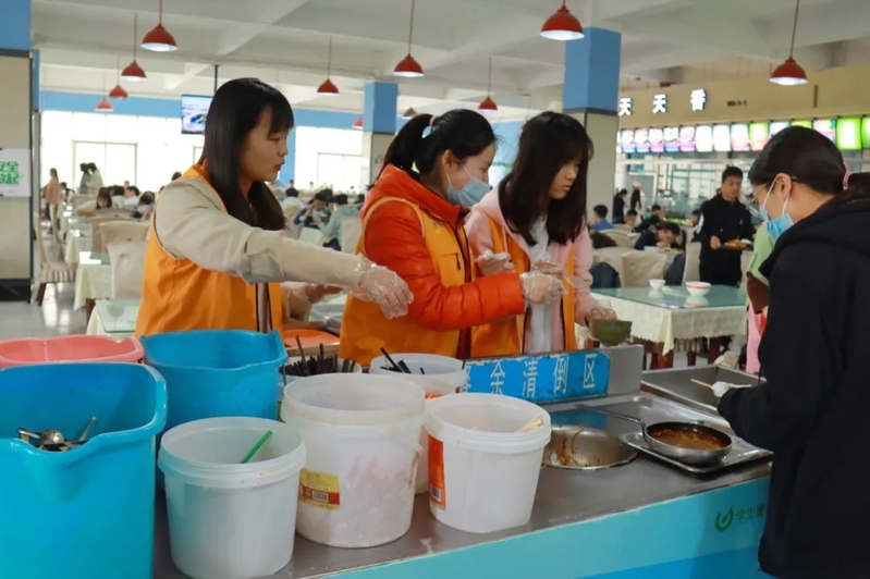 活动结束后,有一位食堂阿姨笑着说道:“这些孩子很棒的,他们会定期来帮我们收拾碗筷、餐桌,有时候是两个人,有时候是三四个。有的之前干过,手脚很麻利,有的第一次弄这个,不知道不同的碗、碟子、筷子在放哪儿,但是也会时不时的问我们,我们一说他们就会了,帮了我们不少忙呢!”食堂阿姨还提到,去年她刚来的时候,有很多学生吃完就走了,碗筷、托盘、用过的卫生纸等都摆在桌子上,她们得一桌一桌去收拾,今年这种情况就很少出现了,省去了她们很多精力。