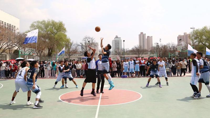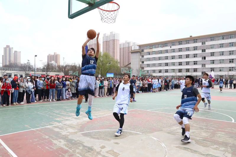 易地再战,15号刘轩、0号屈琮钦接连命中三分,赢得在场一片欢呼。12号吴凌志即使多次摔倒,但立马起身,继续奔跑。奋力拼搏的篮球健儿们对篮球的热爱深深感染着在场的观众,他们用用汗水与激情传递团队合作的精神魅力。