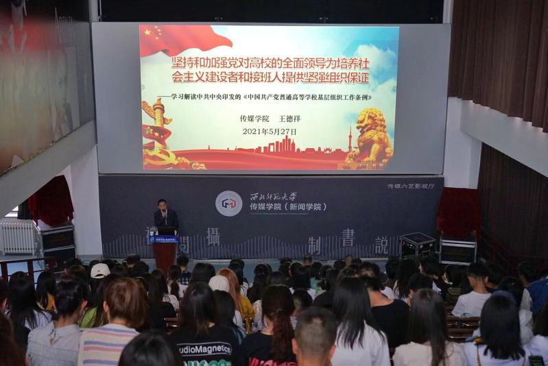 王德祥组织集中学习了中共中央办公厅《关于在全社会开展党史、新中国史、改革开放史、社会主义发展史宣传教育的通知》,中共甘肃省委党史学习教育领导小组关于印发《全省党史学习教育重点工作任务安排》的通知,中共甘肃省委组织部《关于印发进一步加强党员教育管理有关具体措施的通知》,为参会师生党员解读了《中国共产党普通高等学校基层组织工作条例》。