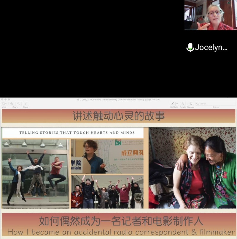 Jocelyn举例多部纪录片,向中外志愿者们说明了纪录片内容真实的重要性,故事永远比技巧更重要,自然情感的流露比摆拍更吸引人。创作者需遵从所在国家的纪录片拍摄伦理,不得违背当地的公序良俗。同时,她也对纪录片后期的审核工作提出了建议和意见,她希望制片人在作品内容不触犯法律和社会秩序的情况下,尽量尊重导演的创作意图,尊重导演的想法和创意,未经导演允许不做随意的修改,避免引起不必要的纠纷。2021“看中国·甘肃行”项目主管刘江凯也再次强调了纪录片的审查问题。