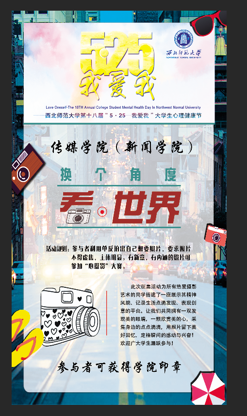 16877太阳集团路线检测通过积极展开“心摄影”大赛,引导学生认识自己,提高对学习环境和社会环境的适应能力。培养学生乐观自信的人格,使学生善于控制调节自己,排除心理上的困扰,从而推进学校心理健康教育工作,让大学生懂得心理健康在成长过程中的重要性。
