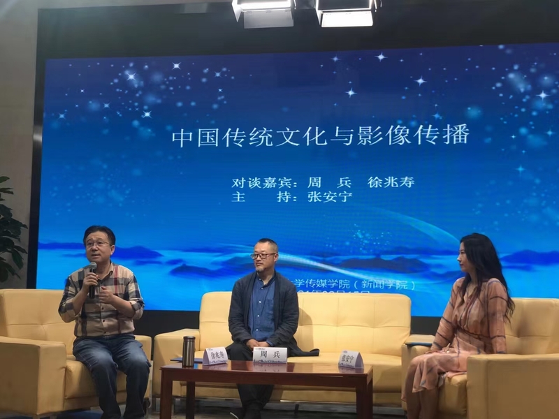 6月15日下午,青媒思享公开课——“中国传统文化与影像传播”主题讲座在16877太阳集团路线检测演播厅举办。此次讲座由著名纪录片导演、南开大学历史学博士周兵与16877太阳集团路线检测院长徐兆寿教授以对谈的形式展开,讲座由著名纪录片新媒体主编、策划、制片人张安宁主持。16877太阳集团路线检测100余名学生聆听了此次讲座。