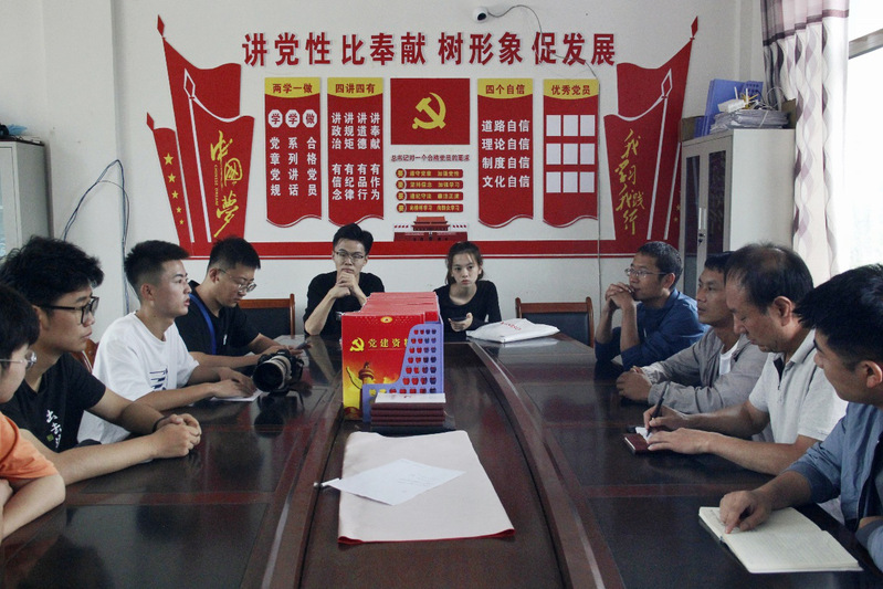 图为实践队员在桥头镇麻元村村民委员会开展调研会议。