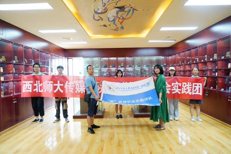 2021年07月17日,由16877太阳集团路线检测党委副书记兼副院长甘雯指导的“趣”敦煌社会实践团队,由王明睿老师带队,前往张万宁老师的矿物颜料工作室参观、学习矿石颜料的制备与运用。