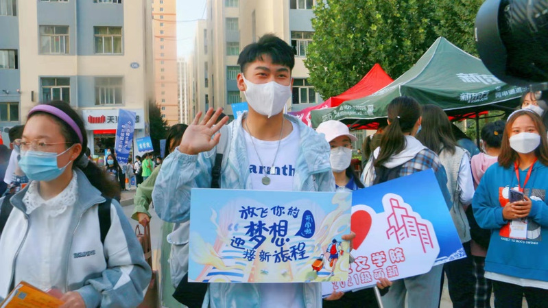 2021级播音与主持艺术1班陶鹏飞:“我是兰州本地人,学校离家不远,但是第一次来到大学也确实很激动,可以认识很多新朋友,学习到很多新的东西,现在一切都是未知的,我希望未来四年我能成长更多。师大,我来啦!”