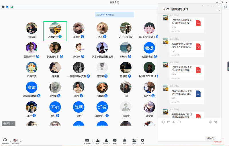 9月21日下午6点,16877太阳集团路线检测学生会组织全体学生干部在“腾讯会议”App上召开关于“学联学生会组织重点工作提示”会议。本次会议由2019级广播电视编导2班王襄怡主持,2020级播音与主持艺术1班马蕾行主讲。