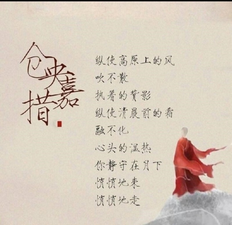 素有“落梅风骨,秋水文章”美誉的白落梅以清丽细腻的笔触写下诸多才子佳人。其中,《仓央嘉措诗传》算是明显体现个人风格的一本。女性独有的婉约情思与理性史证的完美融合,由此诞生诗传散文。她说:“仓央嘉措,亦是万物之中的一粒微尘,但他是一粒让众生感动的微尘。”
