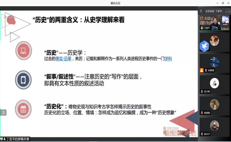 12月9日晚,中国艺术研究院二级研究员、博士生导师丁亚平老师应邀为我院师生做了题为《走进“电影通史”》的线上学术讲座。广播电视编导系主任赵丽瑾教授主持讲座,数百名师生在线收听。